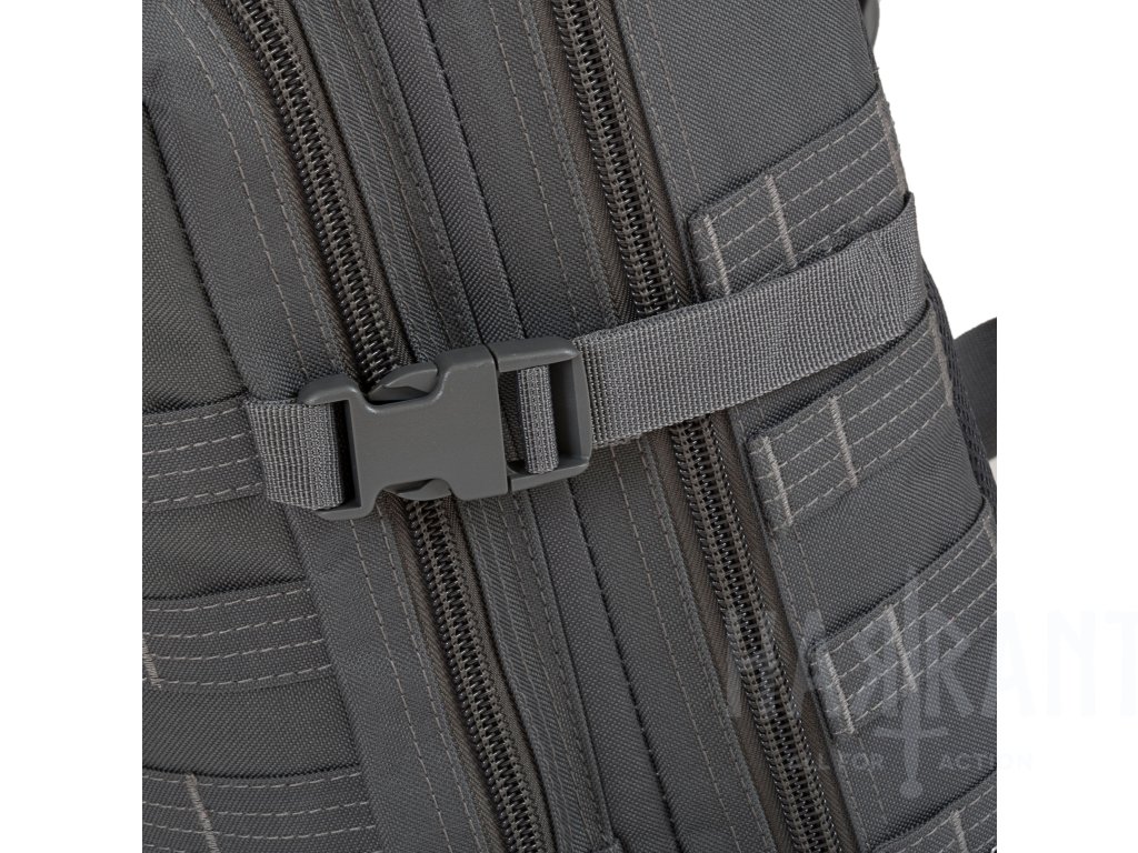 Dvě hlavní komory a vnitřní kapsy umožňují přehledné uspořádání výbavy. Přední kapsa obsahuje praktický organizér pro drobnosti. Díky systému MOLLE lze na batoh připevnit další taktické pouzdra nebo vybavení.