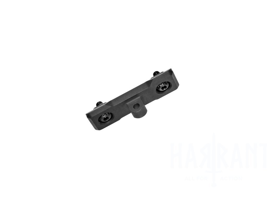 Montáž je plně kompatibilní s příslušenstvím upevňovaným pomocí závěsných čepů. Je vyrobena z odolného eloxovaného hliníku, který kombinuje pevnost s nízkou hmotností. Zaoblené konce a rohy přispívají k většímu komfortu a bezpečí při manipulaci. Veškeré příslušenství potřebné k instalaci na M-LOK systém je součástí balení.