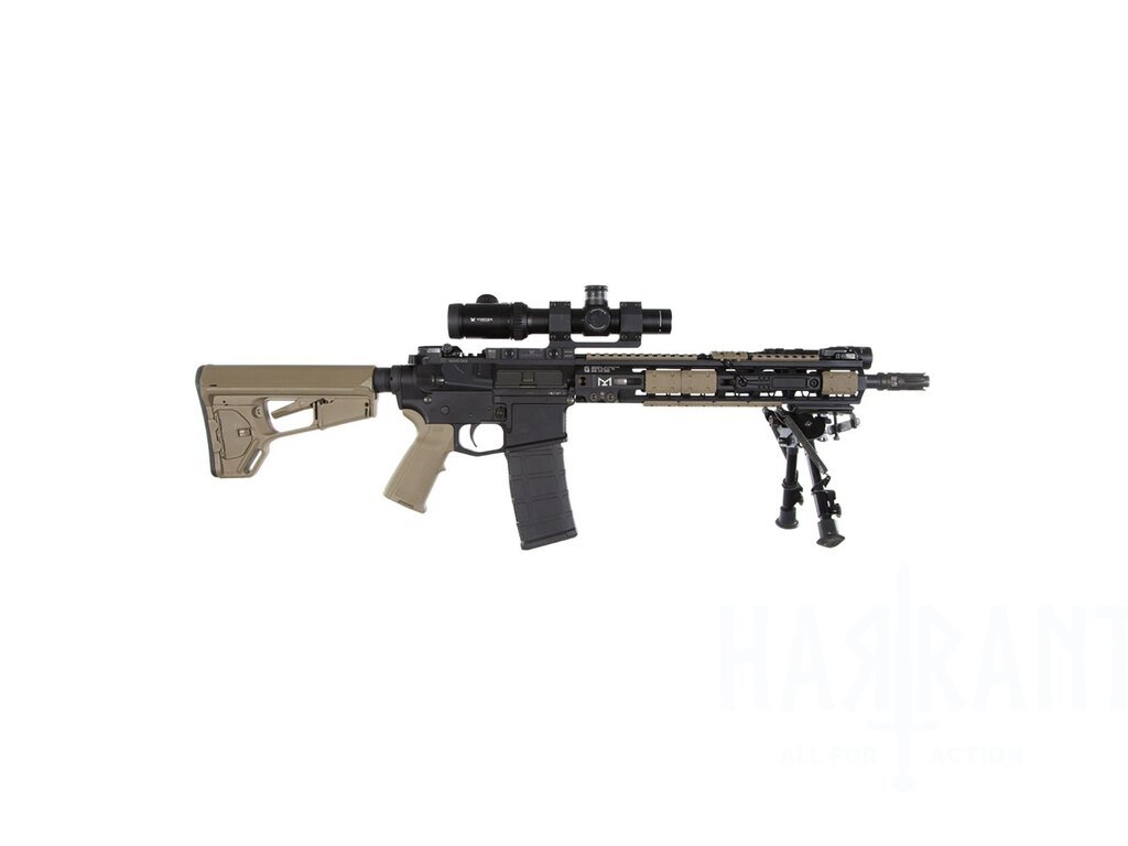 Díky této montáži snadno upevníte téměř jakýkoliv bipod typu Harris. Nízký profil minimalizuje zvětšení celkového profilu zbraně a umístění montáže blízko k tělu zbraně zajišťuje, že připevněná dvojnožka je stabilnější než u běžných adaptérů.