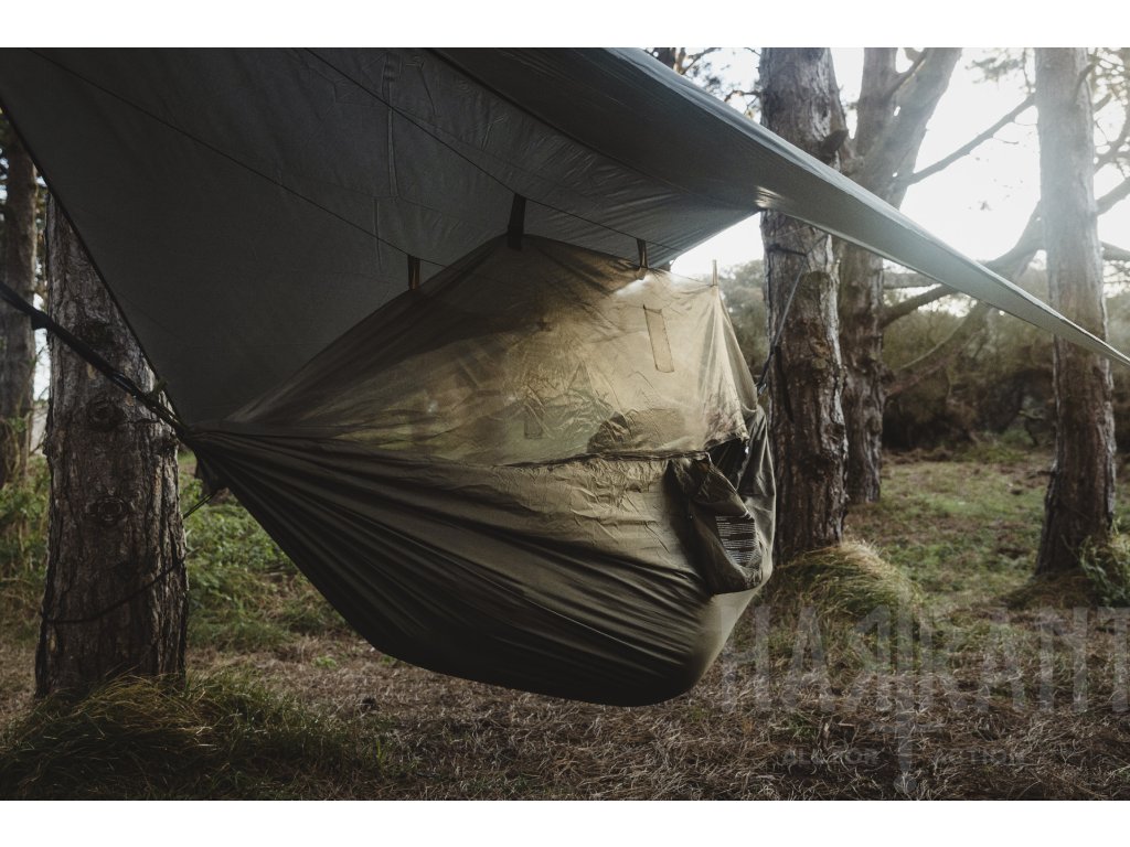 Součástí setu je integrovaná jemná moskytiéra, která chrání před hmyzem, a voděodolný tarp s vodním sloupcem 2000 mm poskytující ochranu před deštěm a větrem. Díky tomu je hamaka vhodná pro trekking, bushcraft i další outdoor aktivity.
