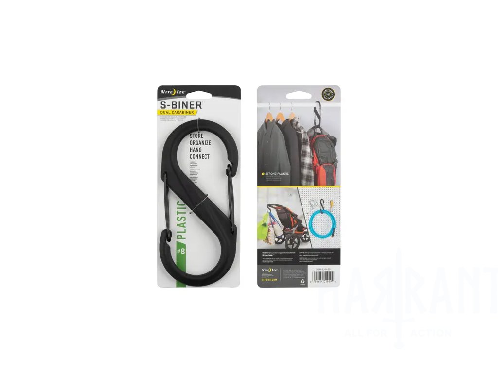 Plastová verze unikátních S - karabin. Vyrobené z termoplastických materiálů (glass filed nylon) a dostupné v různých barvách a velikostech. Dvoustranný oddělený vstup karabiny nabízí nepřeberné množství variant využití. Pojištění, upevnění, zavěšení taktického vybavení na výstroj, zavěšení klíčů, pouzder na mobil, kempovacího vybavení. Prostě téměř čehokoliv co vás napadne. Pro maximální jistotu můžete vybavení upevnit přes oba vstupy na centrální část, nebo můžete pomocí S karabiny spojit více věcí dohromady. Menší varianty karabiny (#2 -3) jsou ideální pro zavěšení jednotlivých klíčů na záchytný kroužek nebo pro zajištění zipů batohů a kufrů spojením jejich jezdců. Středně velké S karabiny (#4 - 6) použijete pro připevnění nebo spojení většiny běžného vybavení. Pitné lahve k batohům nebo opaskům, boty na batoh nebo na strom, rukavice a zásobníky na vestu, zahradnické vybavení na stěnu, nákupní tašky na držáky v autě. Navíc můžete použít rozdílné barvy pro různé vybavení nebo členy rodiny. Organizace vybavení tak bude ještě jednodušší.
