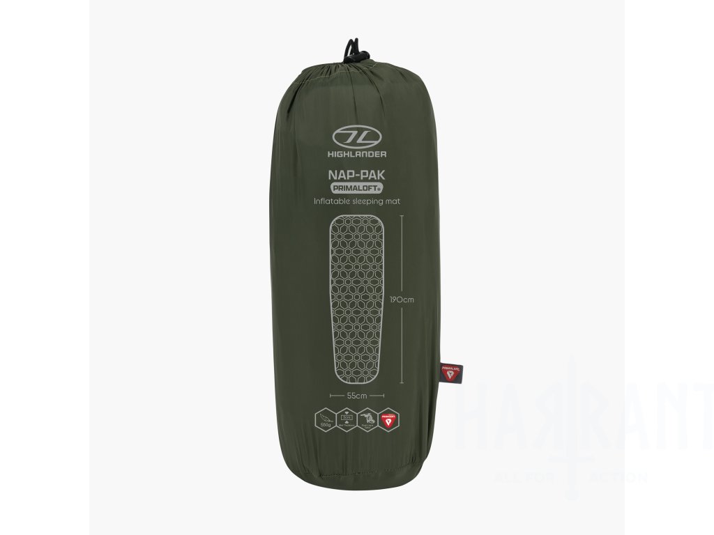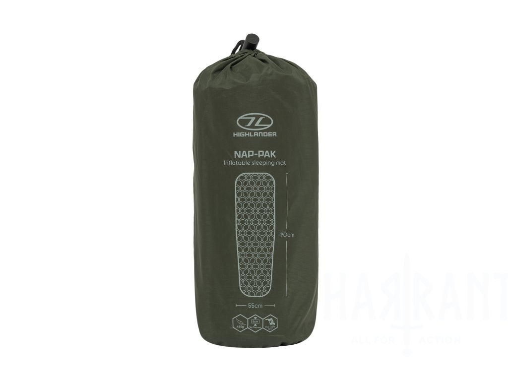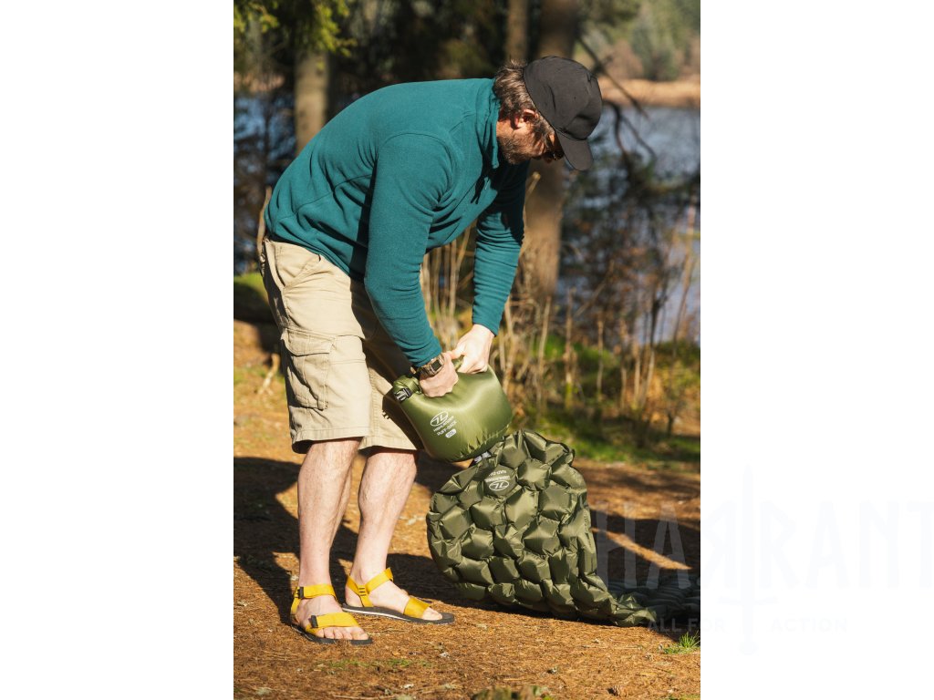 Highlander Nap-Pak Inflatable Sleeping Mat je ultralehká nafukovací karimatka navržená pro turisty, cestovatele a milovníky outdooru, kteří chtějí minimalizovat hmotnost vybavení bez kompromisů v pohodlí.