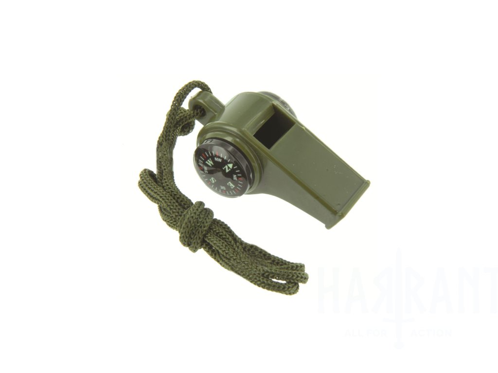Píšťalka vydává vysoký a daleko slyšitelný tón, který je vhodný pro signalizaci nebo přivolání pomoci v nouzových situacích. Integrovaný tlačítkový kompas umožňuje rychlou orientaci v terénu a mini teploměr poskytuje základní informaci o okolní teplotě.