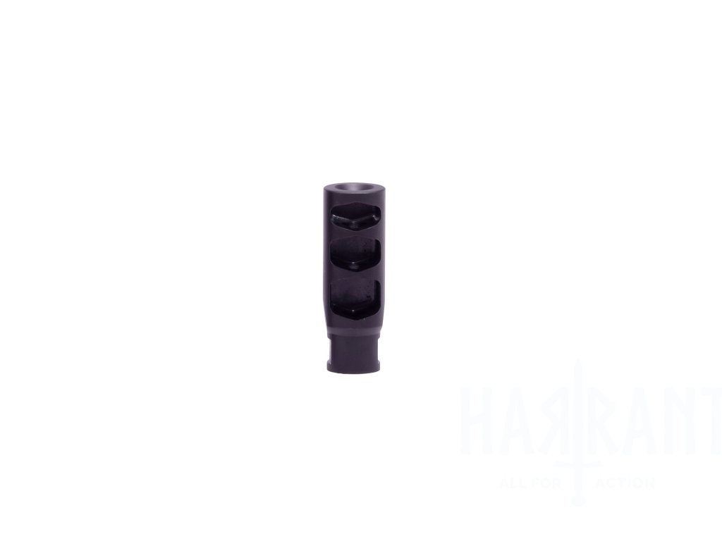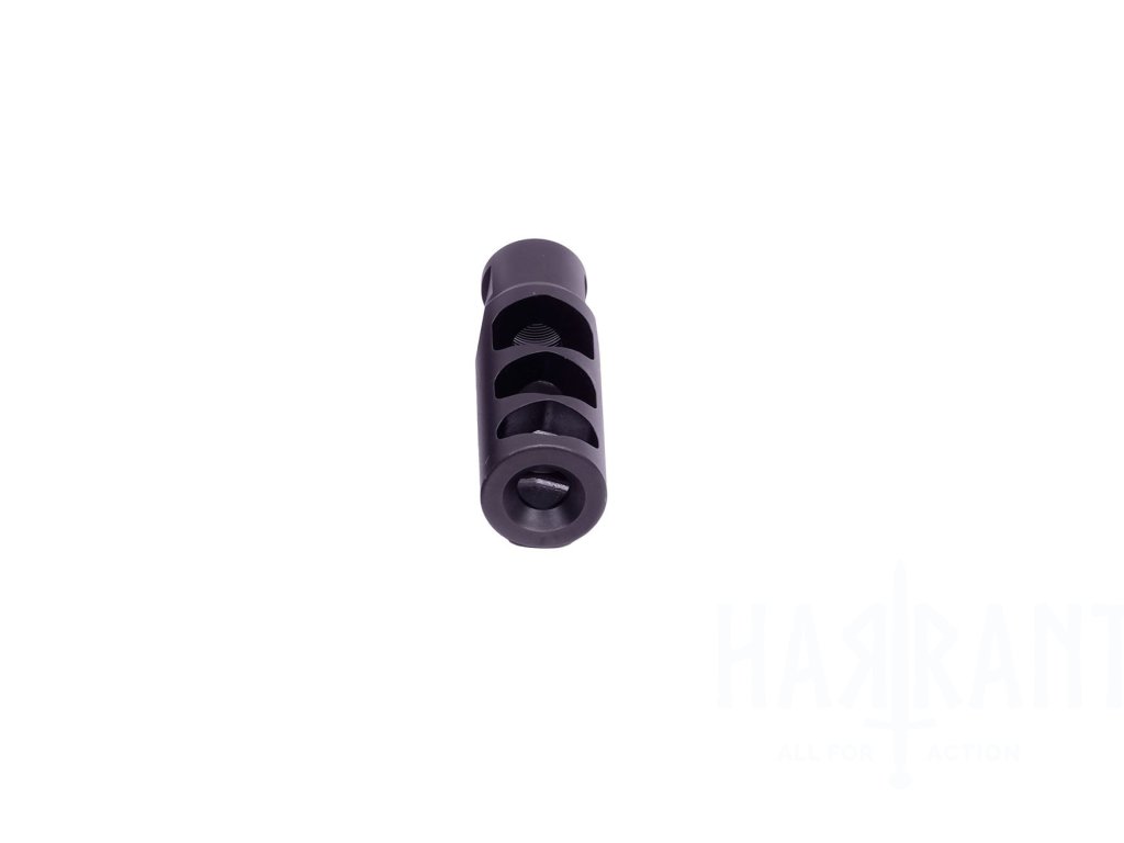 NoRec Compensator — SCHMEISSER 9mm PCC Match kombinuje odolnou, prvotřídní ocelovou konstrukci s precizním tříportovým designem, který účinně směruje plyny tak, aby minimalizoval zvedání hlavně a tlumil zpětný ráž. To přináší rychlejší návrat zamíření po výstřelu a konzistentnější rozptyl ran, což výrazně zlepšuje střelecké vlastnosti zejména při soutěžním použití. Kompenzátor je navržen pro 9mm PCC konfigurace, má montážní závit M14×1 a zároveň umožňuje montáž pomocí standardních nástrojů pro AR-15 — ideální pro uživatele, kteří chtějí kombinovat univerzálnost AR platformy s přesností soutěžního kompenzátoru. Ocelové provedení zajišťuje vysokou odolnost vůči teplu, opotřebení a korozi, takže komponent vydrží i intenzivní používání.