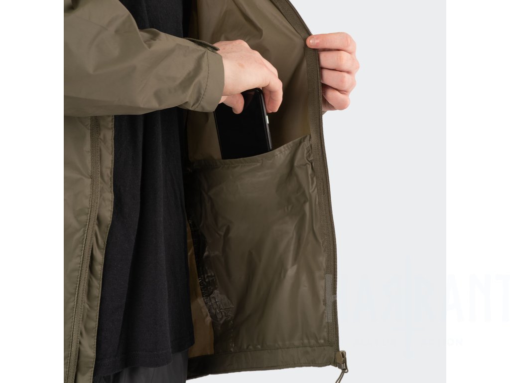 Kapuce s kšiltem je vybavena nastavitelným stahováním, které umožňuje lepší přizpůsobení při nepříznivém počasí. Praktické jsou také dvě přední kapsy na zip pro bezpečné uložení drobností.