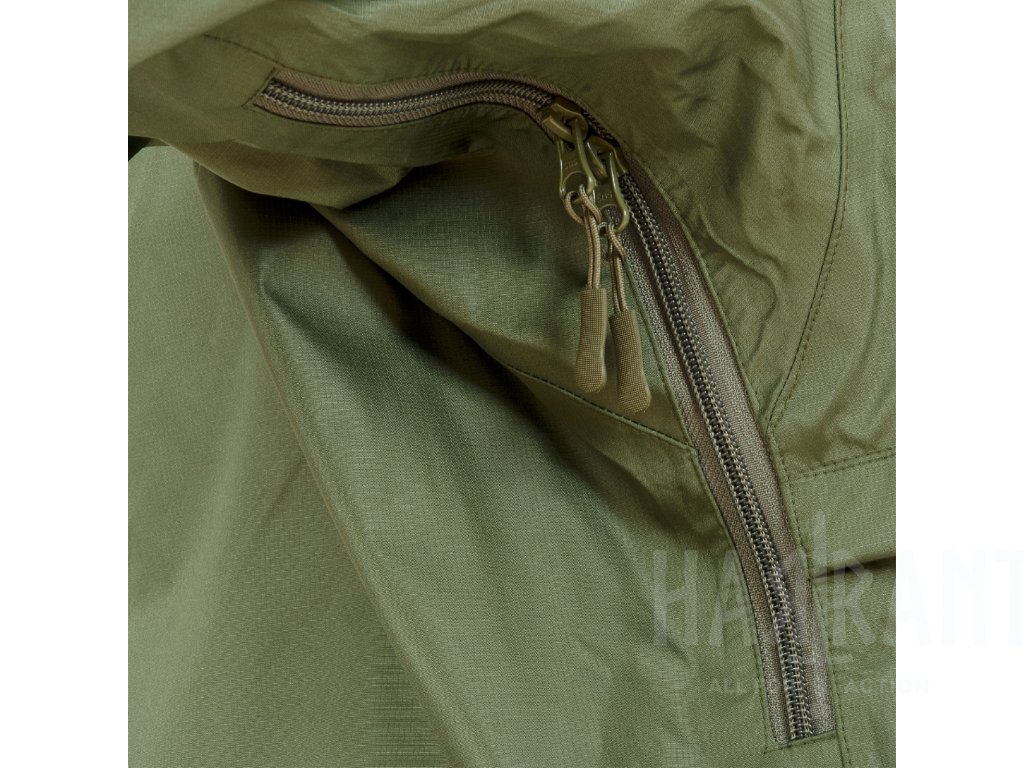 Třívrstvý laminovaný materiál s vodním sloupcem přibližně 5000 mm a podlepenými švy účinně brání pronikání vody i při silném dešti. Povrchová úprava DWR pomáhá odpuzovat vodní kapky a zvyšuje komfort při dlouhodobém nošení.