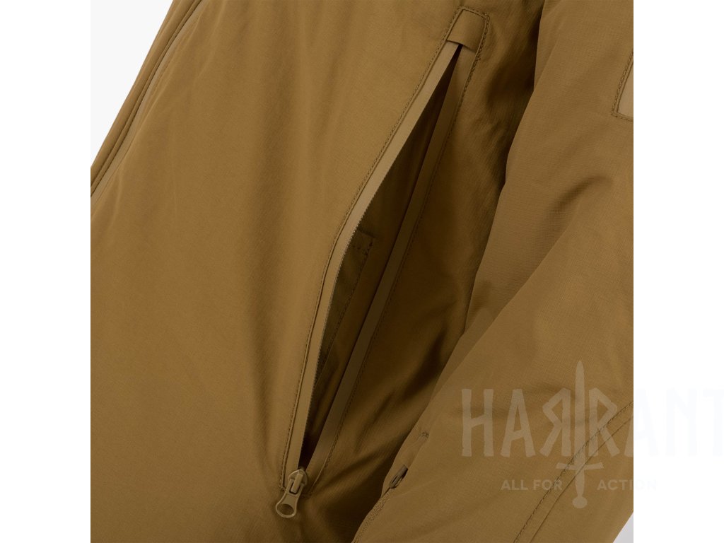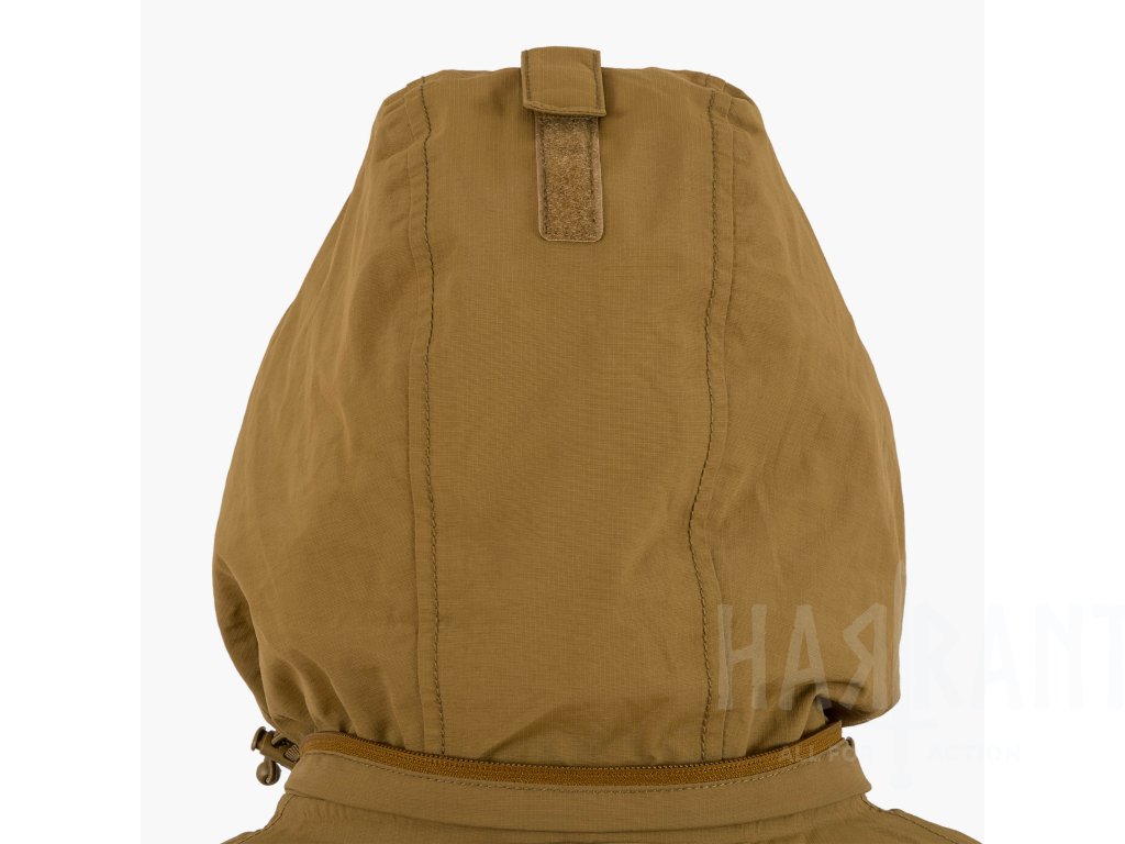 Zateplená vnitřní výplň pomáhá udržet tělesné teplo i v chladných podmínkách. Fleecem podšitý límec, elastické manžety a nastavitelný spodní lem zabraňují úniku tepla. Skrytá nastavitelná kapuce poskytuje dodatečnou ochranu proti dešti a větru.