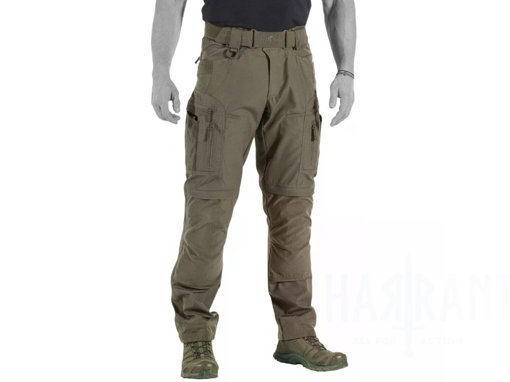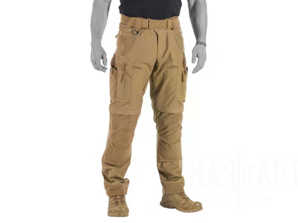 UF PRO P-40 All-Terrain Gen.3 navazuje na osvědčené prvky předchozích generací a přidává moderní materiály i uživatelsky orientované detaily. Trojsložková konstrukce spojuje PolyCo Ripstop pro nízkou hmotnost, prodyšnost a rychlé schnutí; bi-elastické strečové panely v oblasti sedu a zad pro plnou pohyblivost; a CORDURA® výztuhy v místech nejvyššího oděru pro delší životnost. Kalhoty mají 11 ergonomicky rozmístěných kapes pro přístup k vybavení, Waist/Flex systém pro stabilní a pohodlné uchycení pasu a robustní poutka na opasek vyztužená CORDURA®.