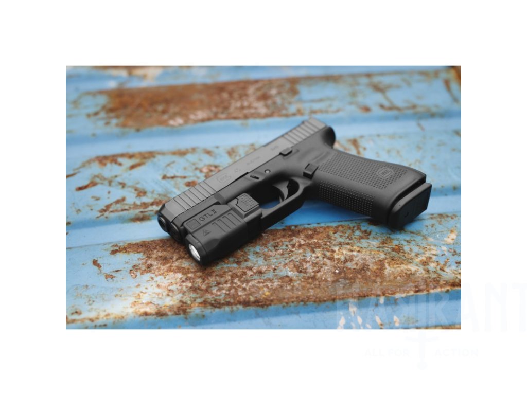 GTL II je moderní taktická svítilna stvořená pro použití na pistolích Glock s montážní lištou. Výkonný LED modul zajišťuje dostatečnou intenzitu světla pro vzdálené i blízké osvětlování, což ocení profesionálové i civilní uživatelé. Tělo svítilny je vyrobené z odolného eloxovaného hliníku s charakteristickým vroubkováním pro lepší úchop a jistotu při manipulaci. Svítilna se nasazuje během okamžiku a po nasazení pevně sedí na railu — v designu je brán zřetel na optimální délku a šířku pro modely G19/G45, což zlepšuje ergonomii při nošení i při uložení v pouzdře.