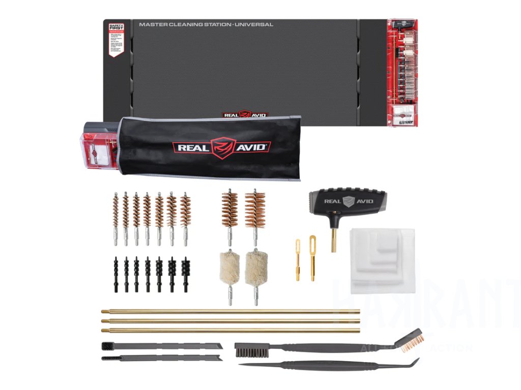 Real Avid Master Cleaning Station – Universal je promyšlená čistící sada pro majitele krátkých i dlouhých zbraní, kteří chtějí mít všechno potřebné na jednom místě. Tato univerzální stanice je vhodná pro čištění pistolí a pušek ráže .22 až .45 a také brokovnic ráže 20 a 12 GA. Součástí je rozsáhlá sada čistících nástrojů uložená v odolném, přehledně organizovaném kufříku.