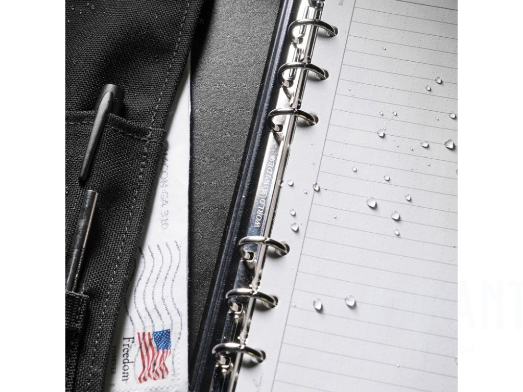 Pořadač je vyroben z tuhého materiálu Polydura o síle 55 gauge, který odolává vlhkosti, skvrnám i každodennímu mechanickému namáhání. Šest kovových kroužků s povrchovou úpravou proti korozi pojme až 75 listů ve formátu 4,625 × 7 palců (cca 117 × 178 mm). Uvnitř se nachází průhledná vinylová kapsa a desky obsahují integrovaná pravítka a převodní tabulky.