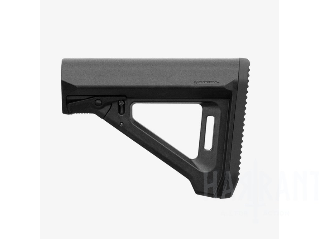 Mil-Spec model pažby MOE® Carbine Stock je navržen pro karabiny AR-15 / M16 s rozšiřující trubicí přijímače (receiver extension) typu Mil-Spec. Aerodynamický A-frame profil zabraňuje zachytávání a zároveň mechanicky chrání uvolňovací západku před nechtěným stlačením.