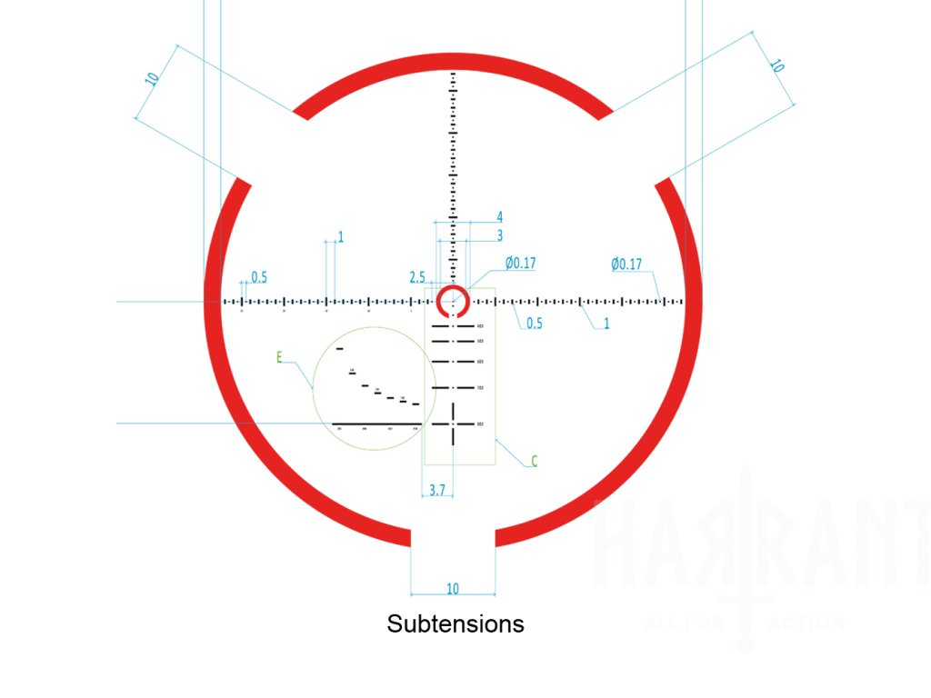 - Umožňuje rychlé zachycení cíle ve vnějším kruhu nitkového kříže, který je také dokonale přizpůsoben standardizovaným soutěžním cílům.