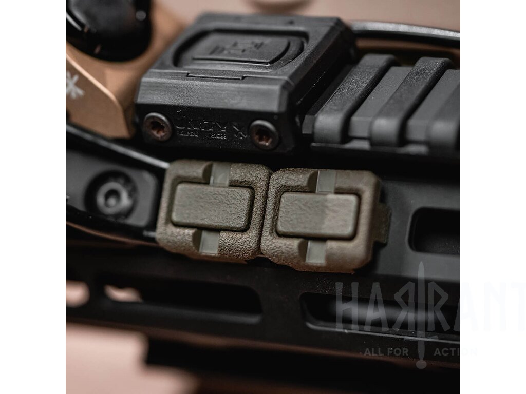 Součástí balení je sada šesti příchytek, které lze podle potřeby rozmístit na M-LOK rozhraní.