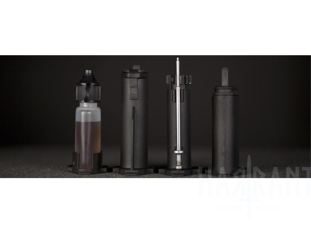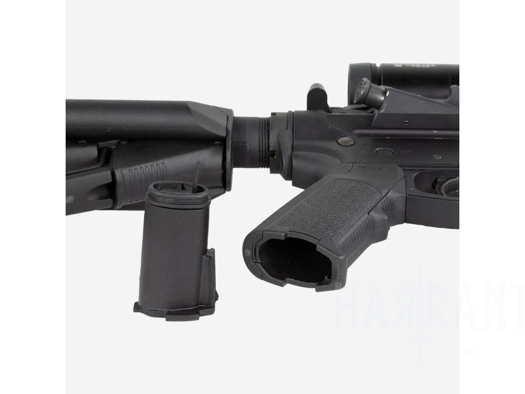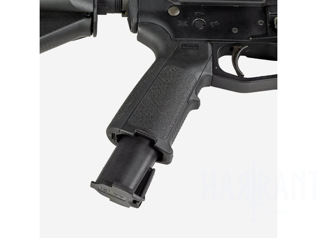 Úložný prostor kompatibilní s rukojeťmi MIAD®, MOE®, MOE-K2® a MOE® AK*. Konstrukce umožňuje bezpečné uložení dvou (2) baterií typu AAA, nebo dvou (2) baterií typu N (běžně používaných v zaměřovačích EOTech) ve voděodolném, samostatném modulu. Pogumovaný kryt je pevně přichycen k jednotce a umožňuje rychlý přístup palcem – i v taktických podmínkách.