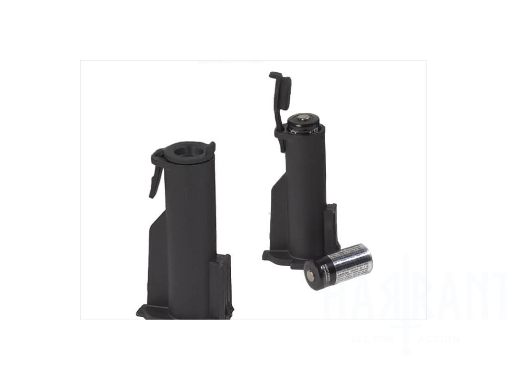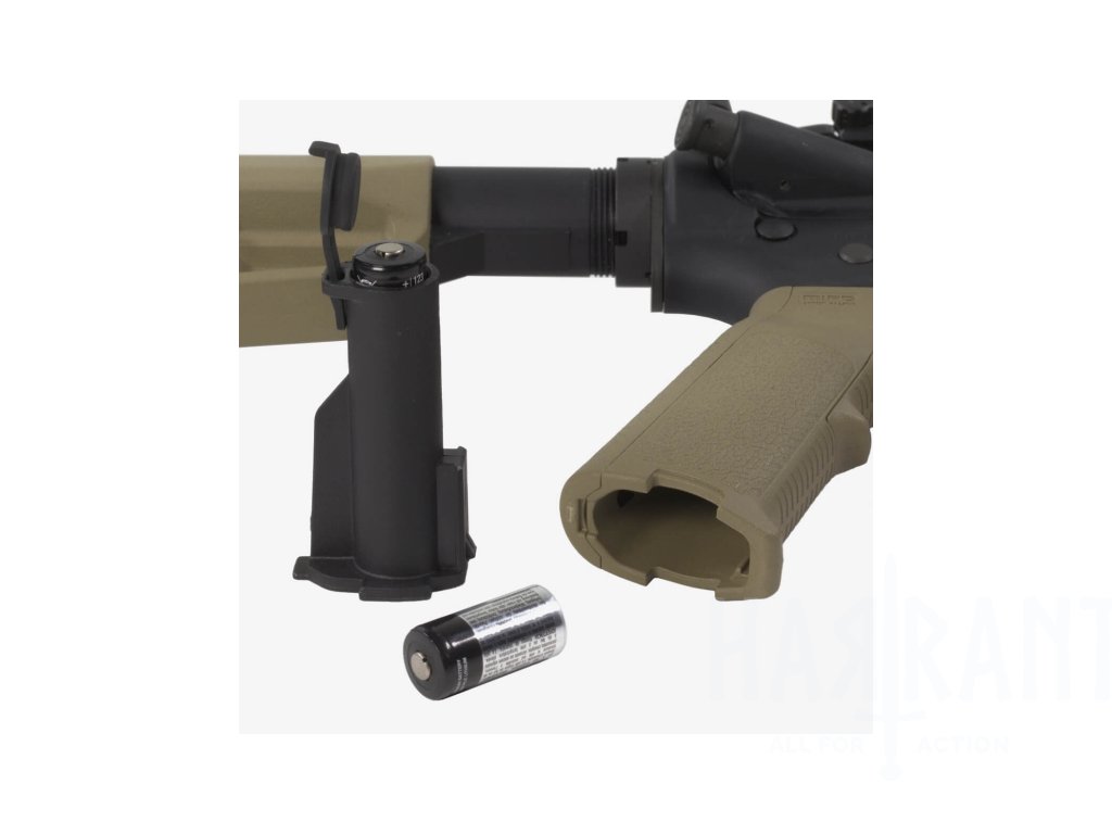 Úložný prostor kompatibilní s rukojeťmi MIAD®, MOE®, MOE-K2® a MOE® AK*. Konstrukce umožňuje bezpečné uložení dvou (2) lithiumových baterií typu CR123A ve voděodolném, samostatném modulu. Pogumovaný kryt je pevně přichycen k jednotce a umožňuje rychlý přístup palcem – i v taktických podmínkách.