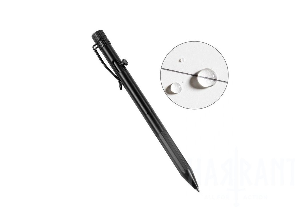 Bolt-Action Pen N° BK16 je robustní kuličkové pero s kovovým tělem a nerezovou sponou, navržené pro náročné použití v terénu i mimo něj. Díky bolt-action mechanismu nabízí rychlou, spolehlivou a přesnou aktivaci.