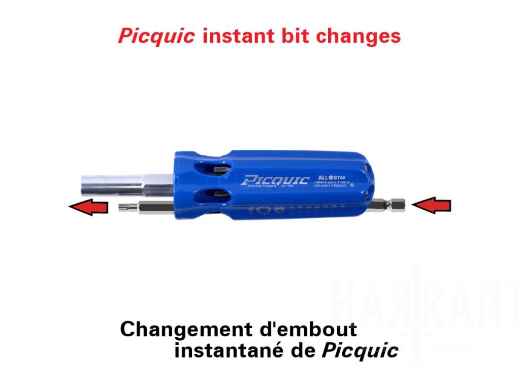 Kanadská společnost Picquic vyrábí již desetiletí ty nejodolnější a nejpraktičtější šroubováky na trhu. Žádný jiný multi-bitový šroubovák vám neumožní stejně rychlou výměnu bitů jako patentovaný systém Picquic.