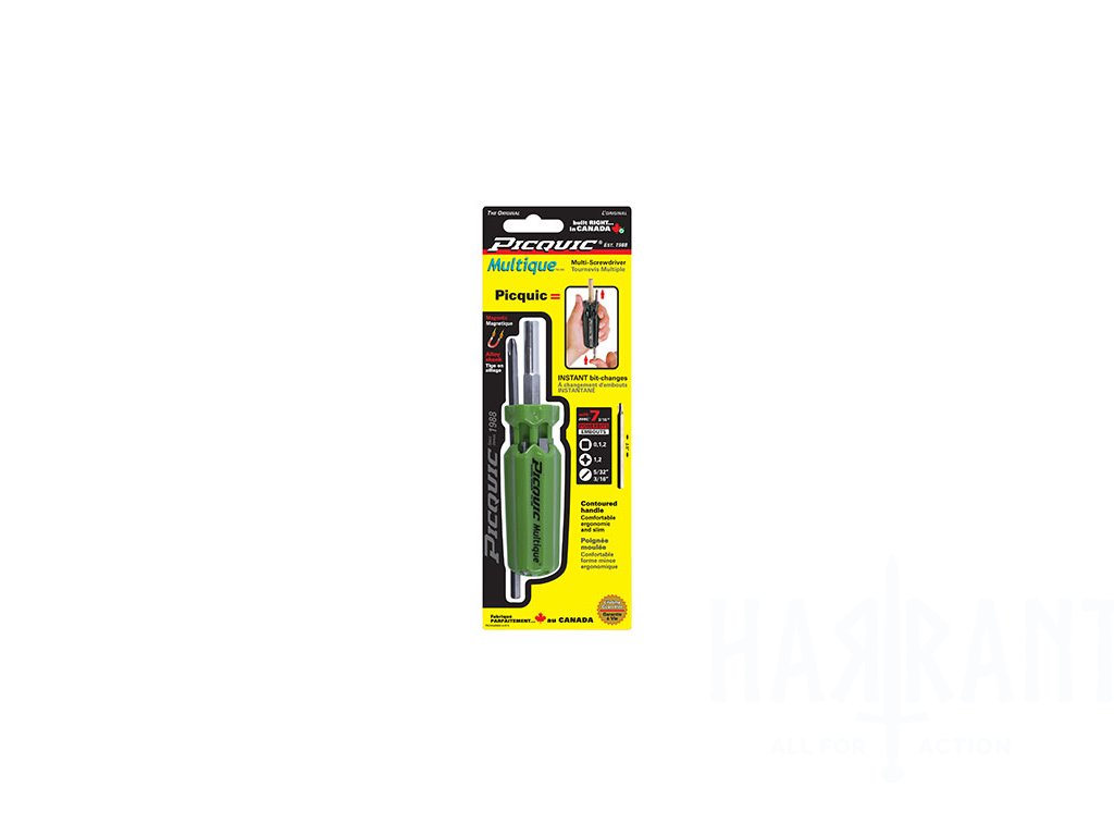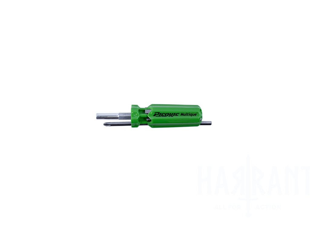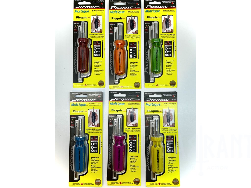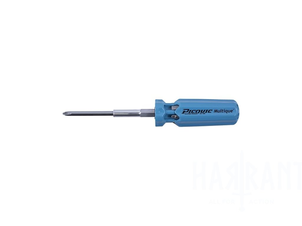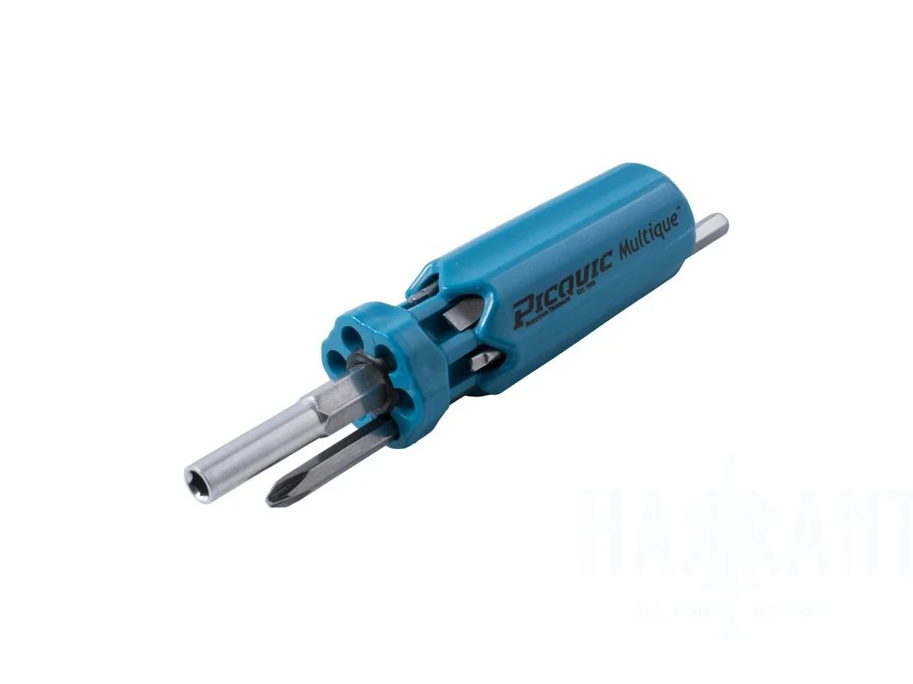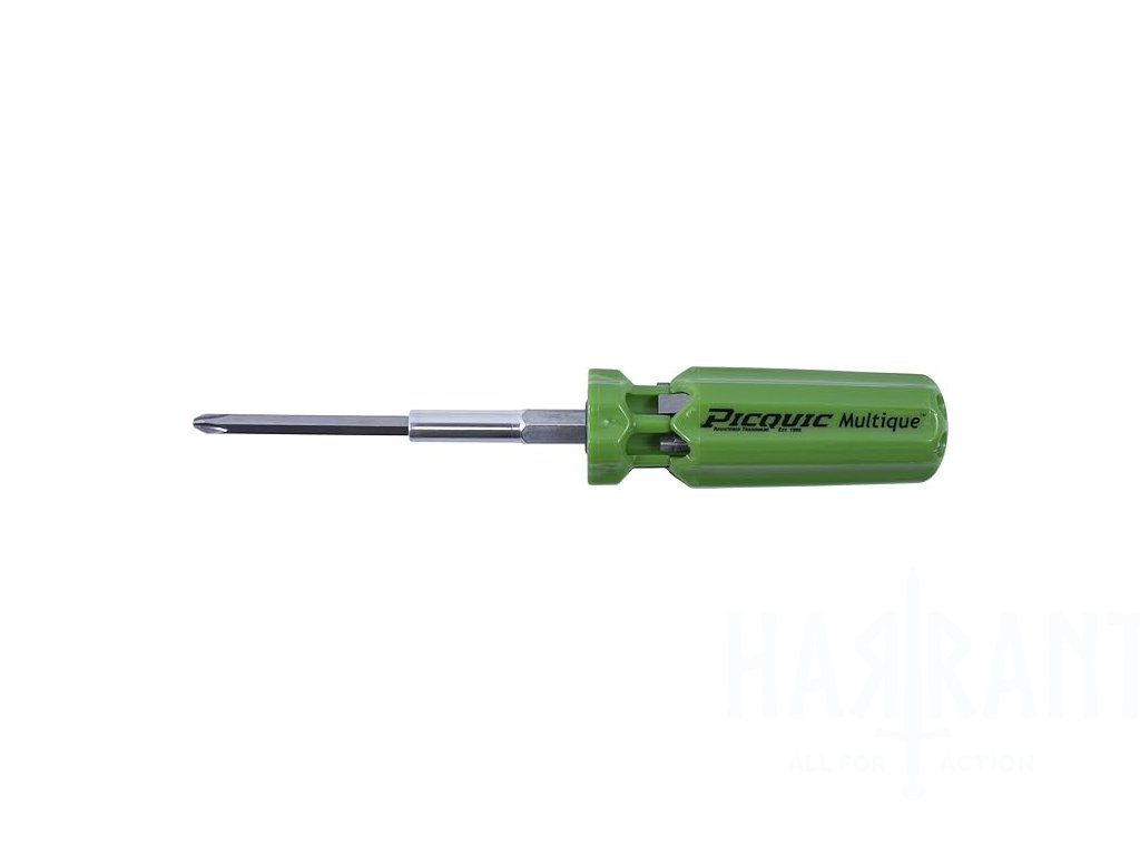 Šroubovák Picquic Multique je ideální nástroj pro řemeslnou a přesnou práci. Jeho ergonomický design je skvělý i pro menší ruce. Multibitový šroubovák Picquic Multique je vybaven bity o průměru 3/16", díky kterým má úzkou a pohodlnou rukojeť. Bity mají délku 2,5" (63,5 mm) a dokážou tedy dosáhnout i do hlubokých prostor. Tyto vlastnosti ho činí ideálním nástrojem pro ruční a přesnou práci. Bity jsou pečlivě zpracované a kalené a odolávají tak opakovanému a dlouhodobému používání. Díky menšímu průměru a univerzální skladbě bitů je tento produkt skvělý jak pro domácí, tak pro profesionální použití. Zejména elektrikáři oceňují jeho precizní provedení, univerzálnost a schopnost rychlé výměny bitů, zatímco ženy preferují vhodnou velikost rukojeti.