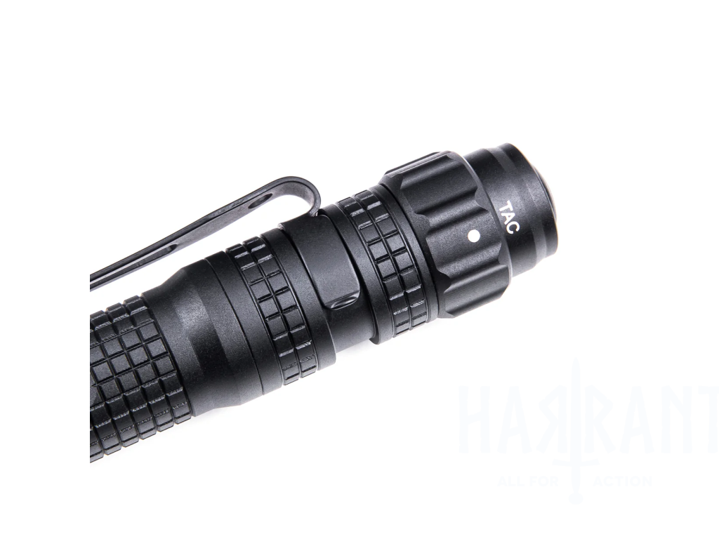 Ergonomické provedení s pogumovanými prvky zajišťuje pevný a jistý úchop i v náročných podmínkách. Tělo z leteckého hliníku zároveň garantuje vysokou odolnost při zachování kompaktních rozměrů.