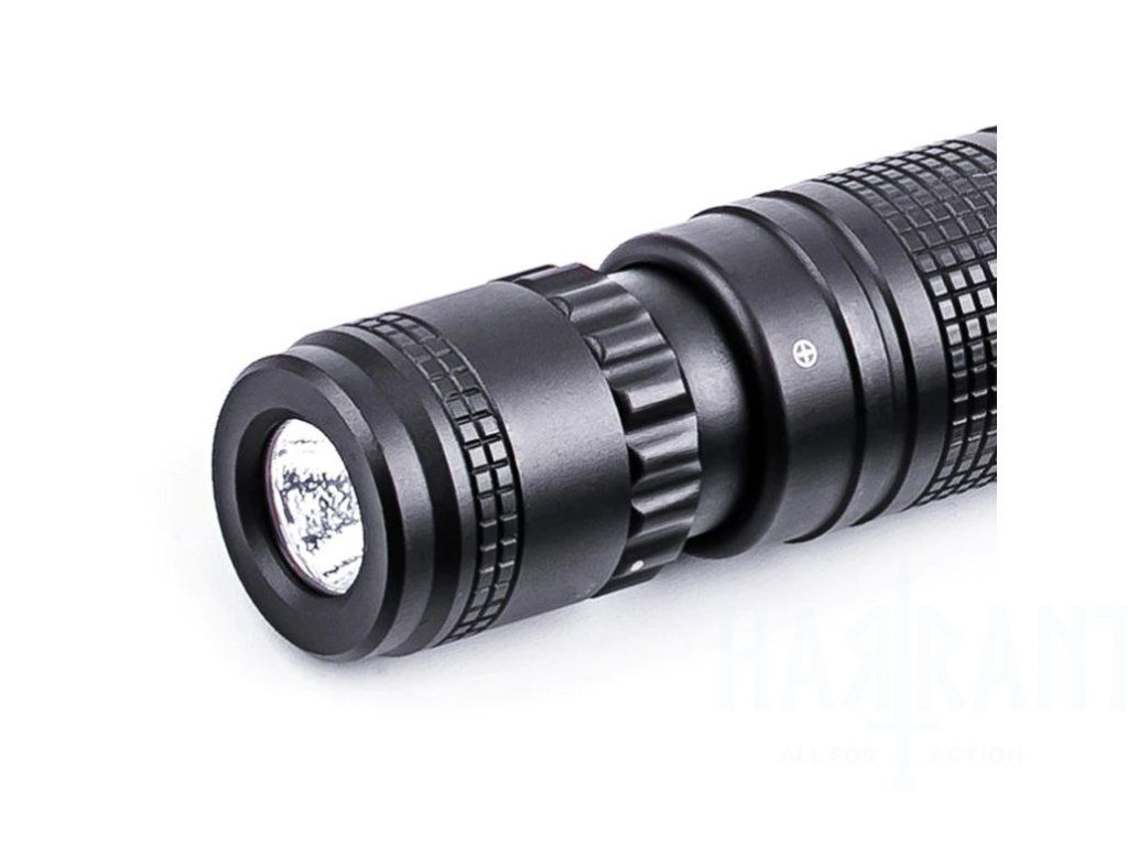 Svítilna s výkonem 410 lm je usazena ve spodní části rukojeti, nabízí 2 módy svícení + stroboskop a pohání ji 1× nabíjecí baterie 14500.