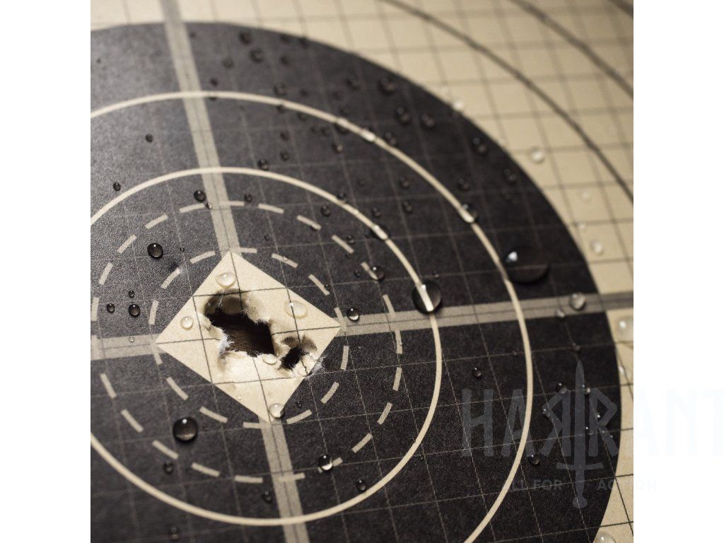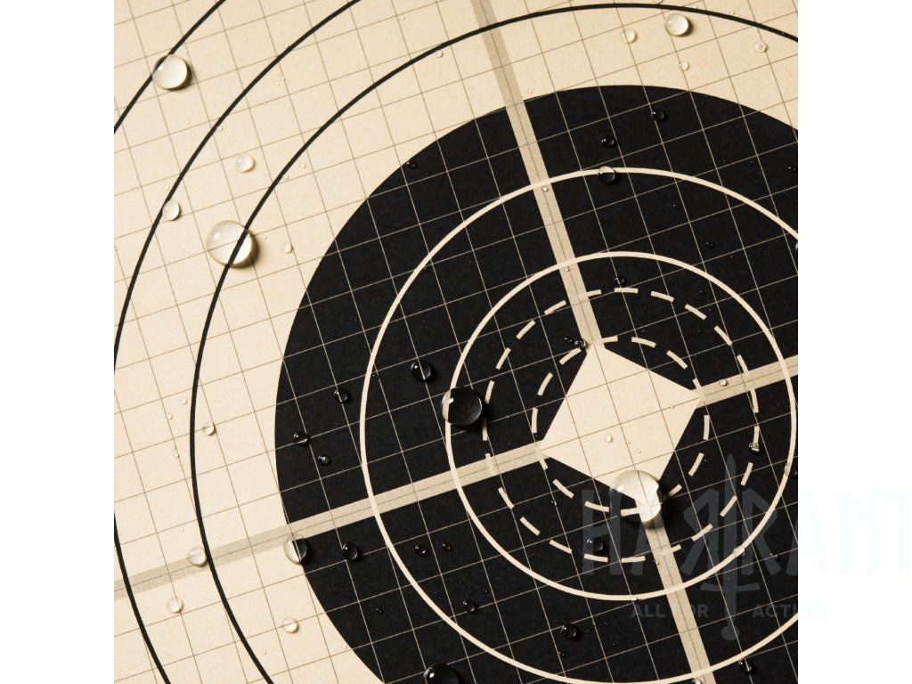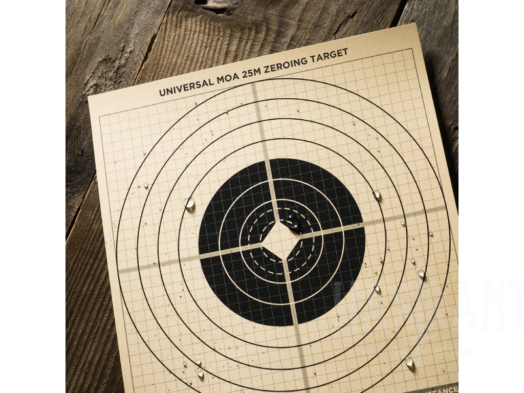 Terč je vyroben z odolného papíru All-Weather o vysoké gramáži, který si poradí s vlhkostí, deštěm i náročnými podmínkami na střelnici. Mřížka s MOA rozvržením usnadňuje přesné vyhodnocení zásahů a provádění korekcí jak ve výšce, tak ve směru. Permanentní potisk se nesmývá ani neodírá a jednotlivé listy lze snadno oddělit i za mokra.