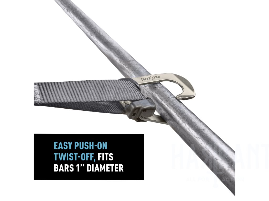 Připojte HookLock k velkému oku a přímo ke kotevním bodům až do šířky 1” (2,5 cm).