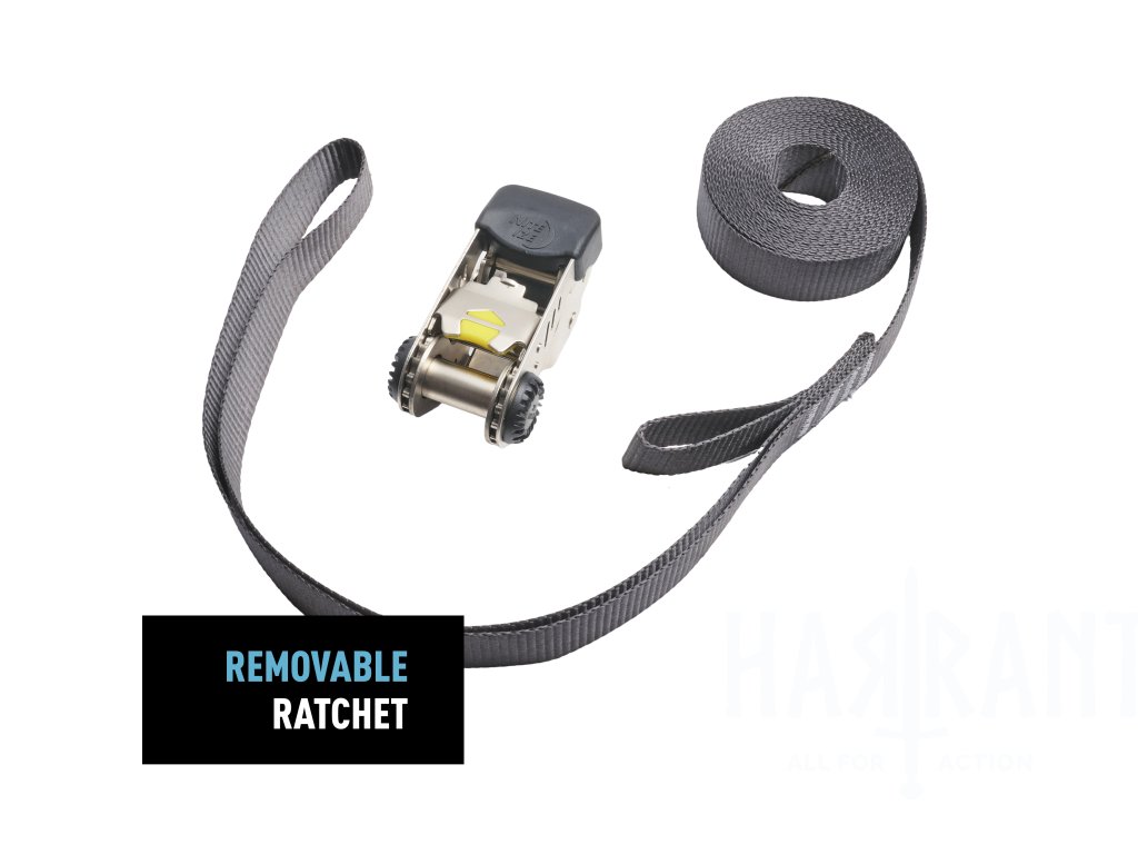 Po příjezdu do cíle využijete patentovanou pákovou západku, která umožňuje snadné uvolnění i vysokého napětí – bez zápasu a frustrace běžné u jiných ráčen.