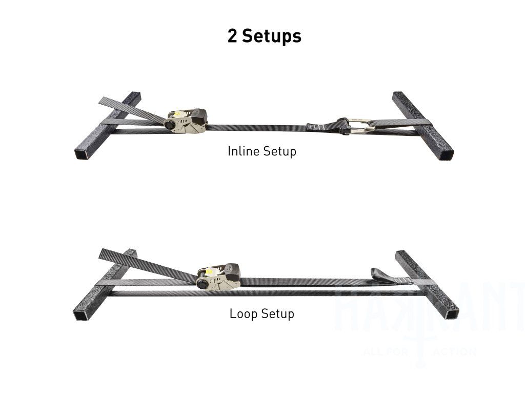 Tento systém je vybaven první odnímatelnou a nastavitelnou sponou na trhu, kterou lze umístit kdekoliv na popruh. To zajišťuje snadný přístup k zařízení a maximální flexibilitu při upevňování těžkých nákladů (pracovní zatížení až 1 000 liber / 453 kg).