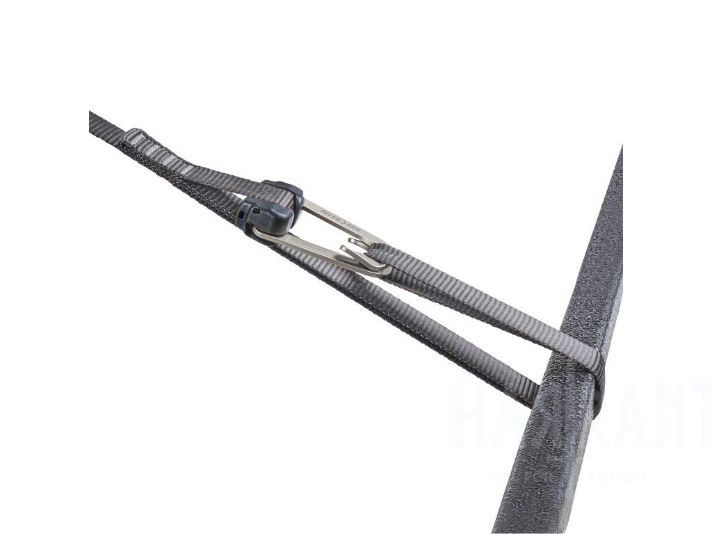 Součástí systému je i pružinový hák HookLock, který nabízí jednoduché nasazení tlakem a sejmutí otočením – okamžitě se uchytí k různým kotevním bodům a zůstane připevněný i bez napnutí, na rozdíl od běžných ráčnových háků.