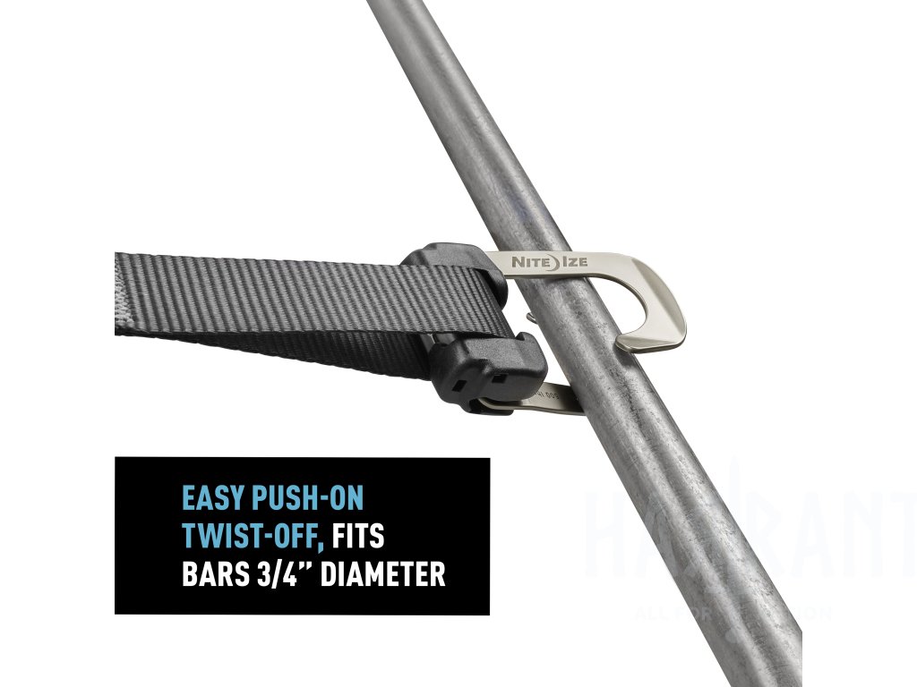 Součástí je také pružinový hák HookLock Strap Hook, který využívá jednoduchý systém nasazení tlakem a sejmutí otočením – okamžitě se uchytí na různé kotevní body a zůstane připevněný i bez napnutí, na rozdíl od běžných ráčnových háků.