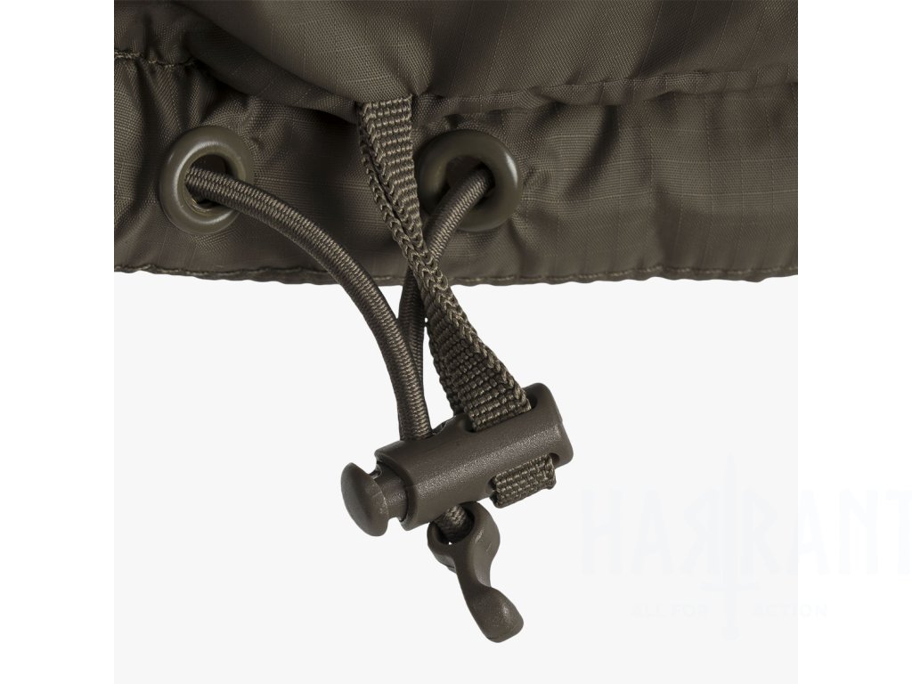 Bunda je vyrobena z odolného nylonového ripstop materiálu, který poskytuje dobrou ochranu proti opotřebení při zachování nízké hmotnosti.